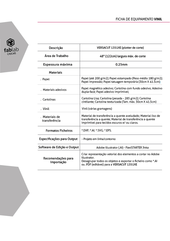 FICHA TÉCNICA PLOTTER – IMPRESSÃO